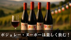 | ラベルで見るポイント | 「Nouveau / Primeur」の表記、AOC(Beaujolais / Villages)、生産者名 | 産地・品種・ヴィンテージ・生産者・サブリージョン/畑名・熟成表記など |