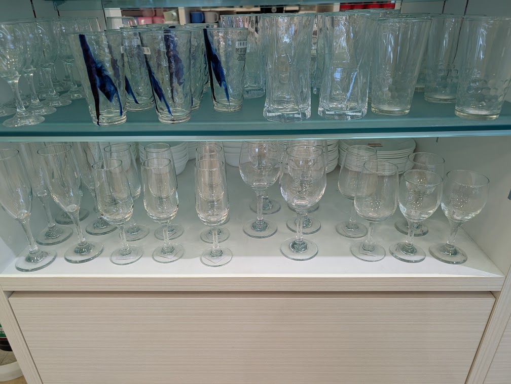 ダイソーの大型店舗の食器コーナーに足を運ぶと、まずその圧倒的な種類の多さに驚かされるかなと思います。かつての100円ショップのグラスといえば、どれも同じような分厚いソーダガラスで作られた、とにかく割れにくい実用性だけを重視したものがほとんどでした。