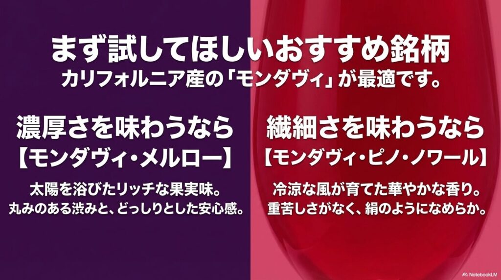 もし機会があれば、今回ご紹介したモンダヴィの2本を週末に両方用意して、ご自宅で「比較テイスティング」をしてみるのも最高に贅沢で面白い体験になるはずです。
