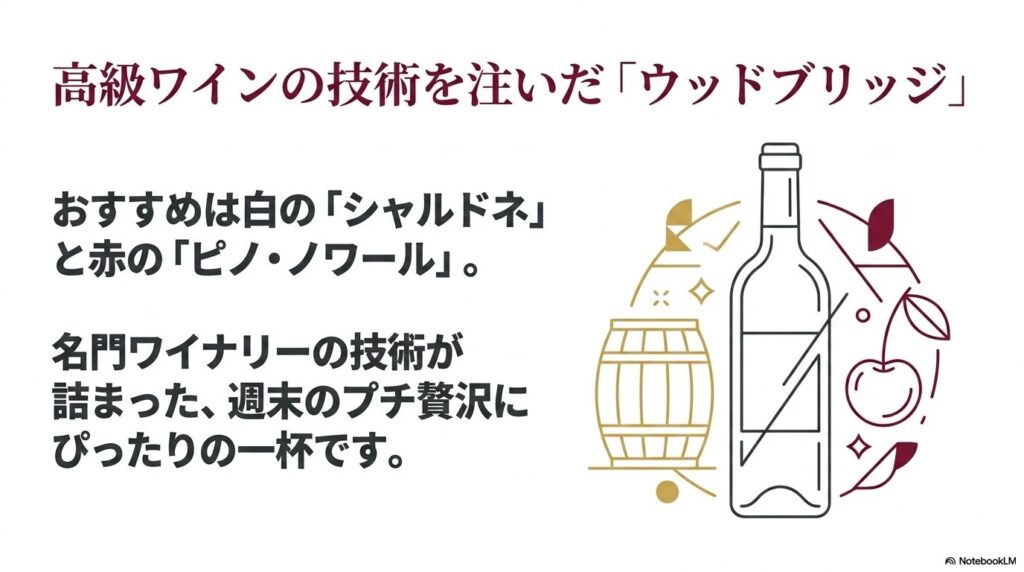 - ウッドブリッジ(名門モンダヴィの技が光る、ワンランク上の満足感)